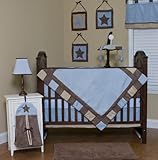 Give your little one the adorable comfort of the sky blue 10 Piece Bedding Set! This child's bedding set combines eye-catching style with soft, comforting 100% cotton materials. Included in this kid's bedding set: 36" x 45" quilt 153" x 90" bumper 26"x 50"x 11" fitted sheet 26"x 50"x 7" bed skirt 15" x 39" valence 12" x 8" x 21" diaper stacker Three 11" x 11" wall hangings One matching musical mobile machine Every item is machine washable. The furniture in the image is not included. Assembly level/degree of difficulty: No Assembly Required. 10 pieces included: quilt, bumper, sheet, skirt, diaper stacker, 3 wall hangings, valanace and musical mobile Machine washable 100% cotton